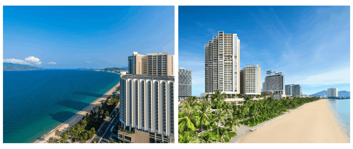 두 골프장 모두 이 위치에서 접근하기 좋고, 저녁에 해변을 걸을 수 있어서 나트랑 골프여행의 베이스캠프로 딱 맞는다.