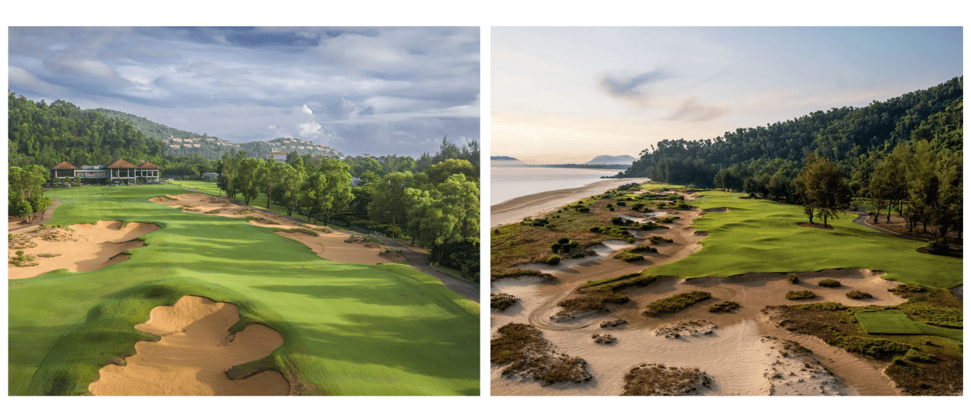 이 코스의 매력은 다양한 환경 변화입니다. 논, 숲, 해변, 계곡, 바위 언덕을 지나며 라운딩하는데, 매 홀마다 다른 풍경과 전략이 필요합니다. 바다와 산이 함께 보이는 뷰가 정말 환상적이죠. Banyan Tree와 Angsana 리조트가 함께 있어 숙박과 식사도 편리합니다.