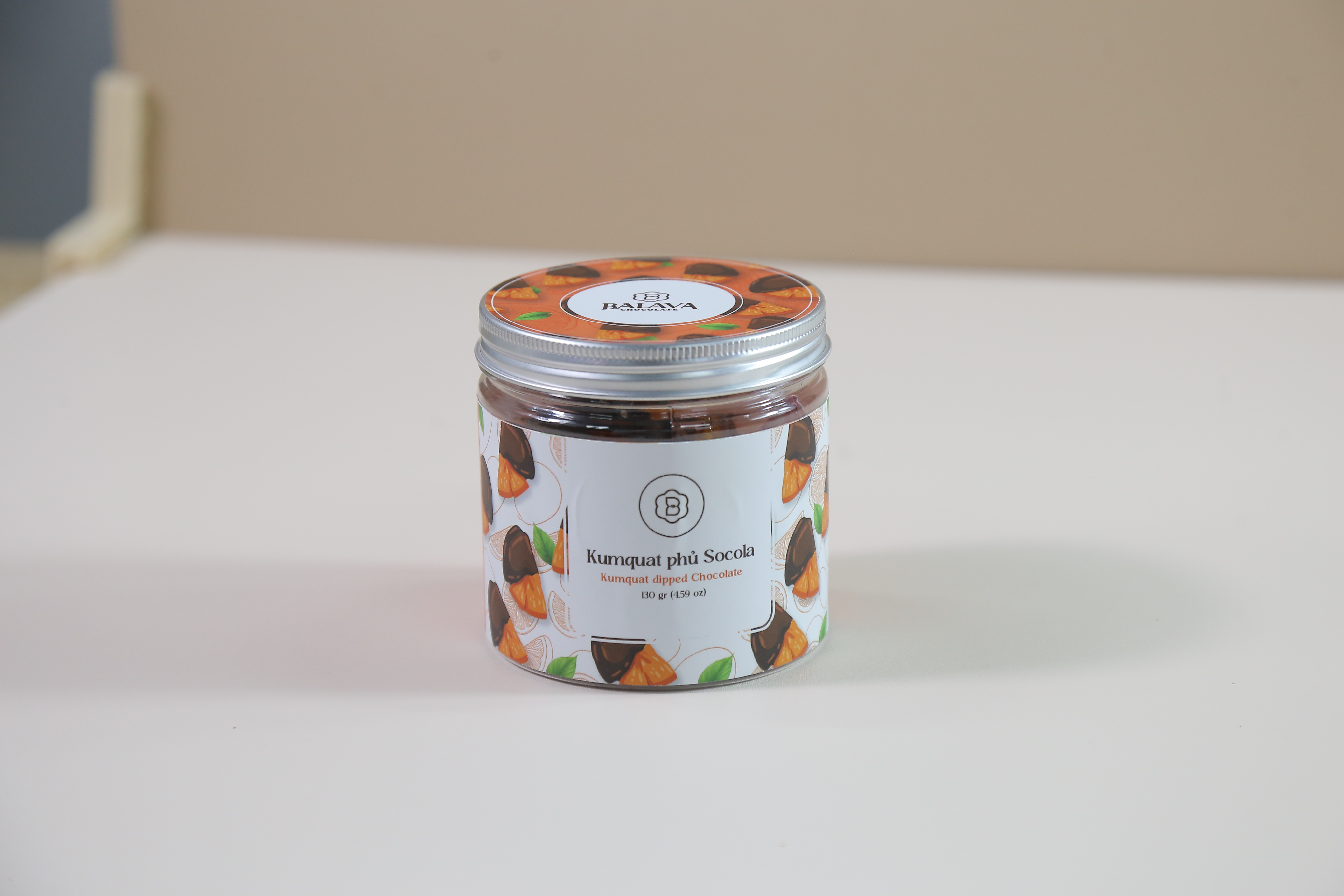 Kumquat phủ socola Balava được làm từ tắc tươi chất lượng cao, sấy dẻo vừa phải để giữ nguyên vị chua thanh và hương thơm đặc trưng của quả tắc. Mỗi miếng mứt kumquat sau đó được phủ đều lớp socola đen 65% từ cacao Việt Nam, tạo nên món trái cây phủ chocolate cao cấp với màu cam vàng rực rỡ và lớp socola nâu bóng quyến rũ.
