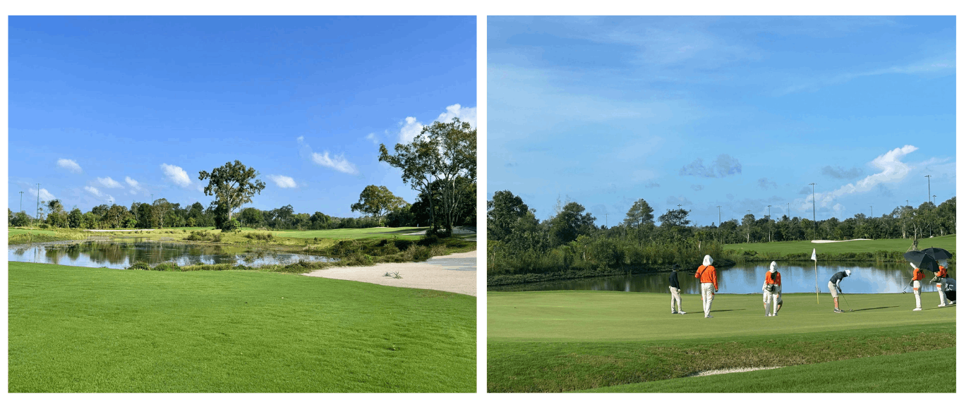 소나기가 지나가고 나면 코스가 의외로 빨리 회복됩니다. 우기라도 라운드 자체가 불가능한 경우는 많지 않으니 참고하세요.